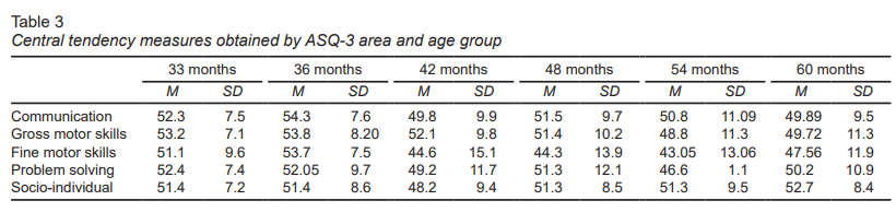 Likewise, the ASQ-3 is a tool that can be used to periodically monitor early childhood development in pediatric medical care as indicated by the Secretaría de Salud (1999) for timely identification of developmental delays.