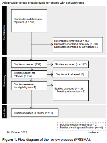 Method: The search was conducted by a specialist from the Cochrane schizophrenia group on March 9, 2023, in the MEERKAT registry, for (*Aripiprazole* and *Brexpiprazole*).