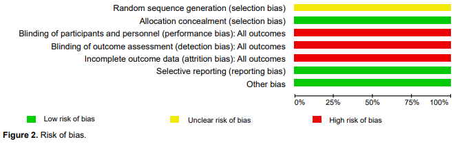 The risk of bias was increased because it was an open-label study and the allocation, although randomized, was not blinded, which decreases the statistical power of the results. On the other hand, the authors indicated that there was a loss of data and provided the number of patients who reached the end of the trial. However, in their analysis of the data, they included the full sample with imputed data, without sensitivity analysis or excluding the missing data from the final analysis.
